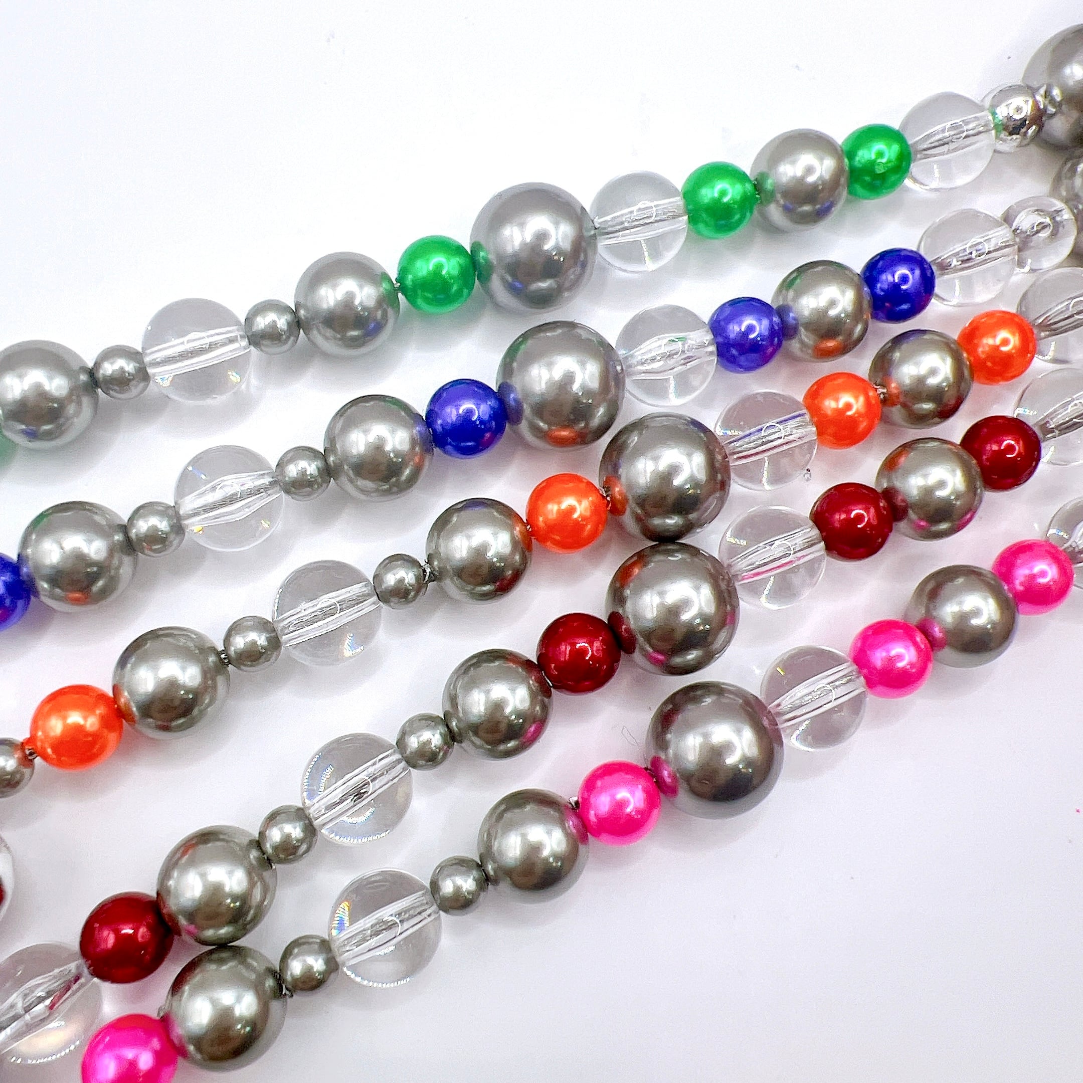 素材:アクリルビーズ、樹脂パールビーズ、ガラスビーズ