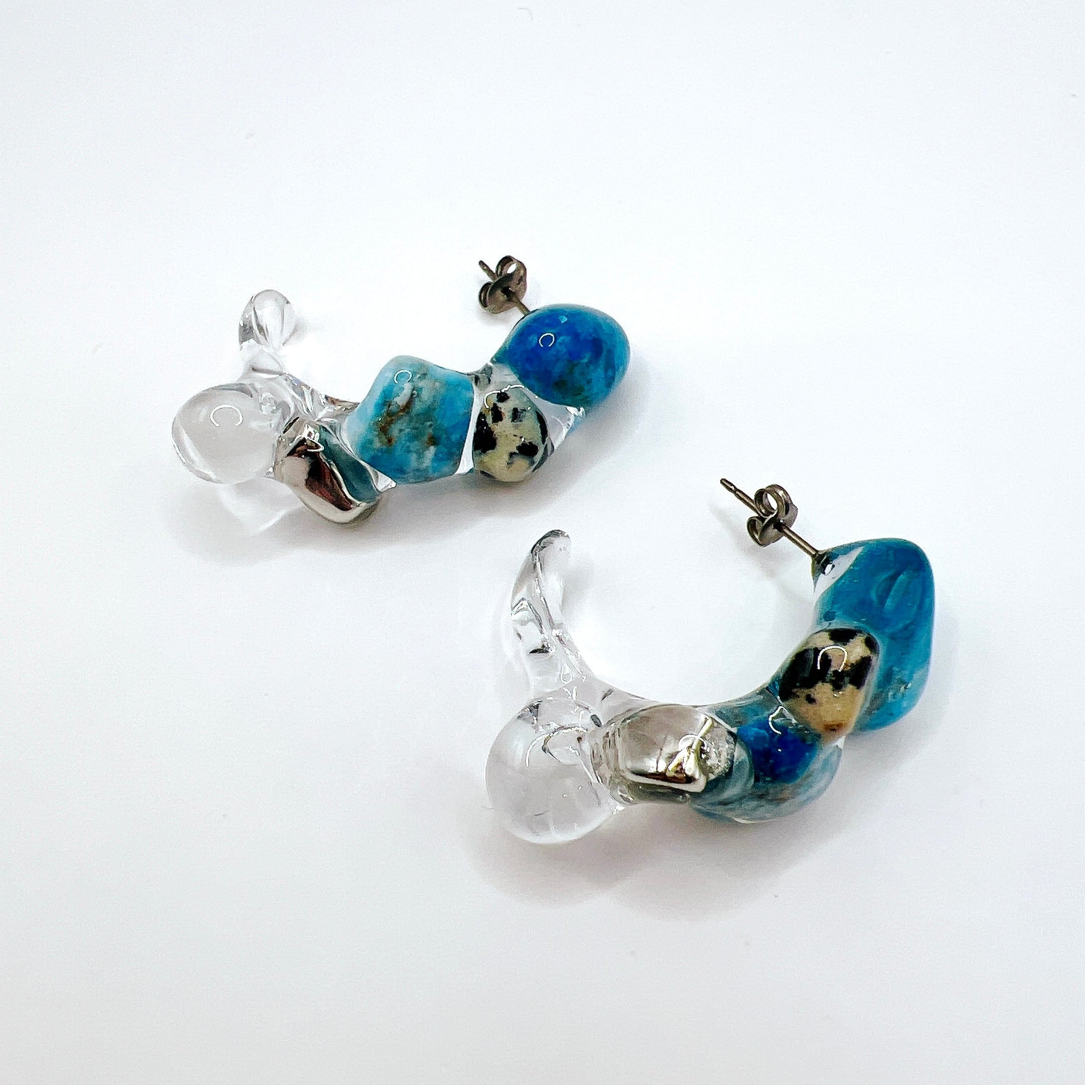 チマで人気なフープタイプのデザインで1点1点天然石やビーズ表情が