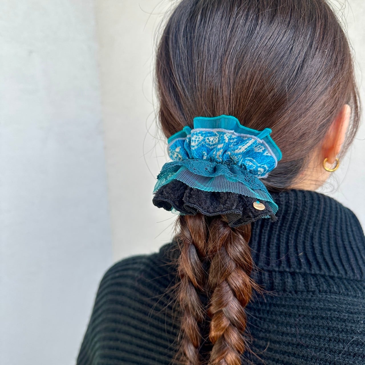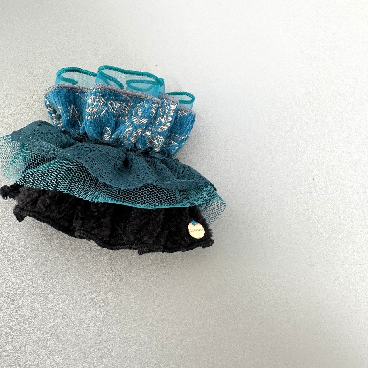 レースやオーガンジーを贅沢に重ねて全ての生地が着けた時に見える様な