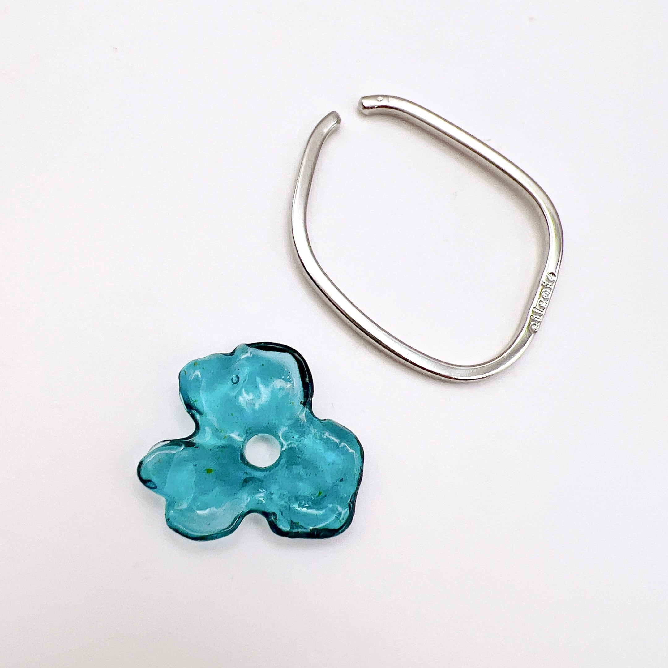片方にお花パーツを重ね着けして、