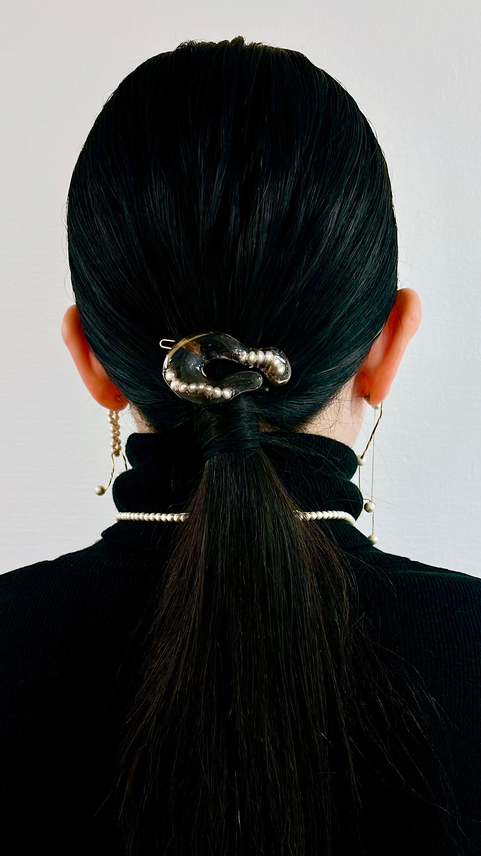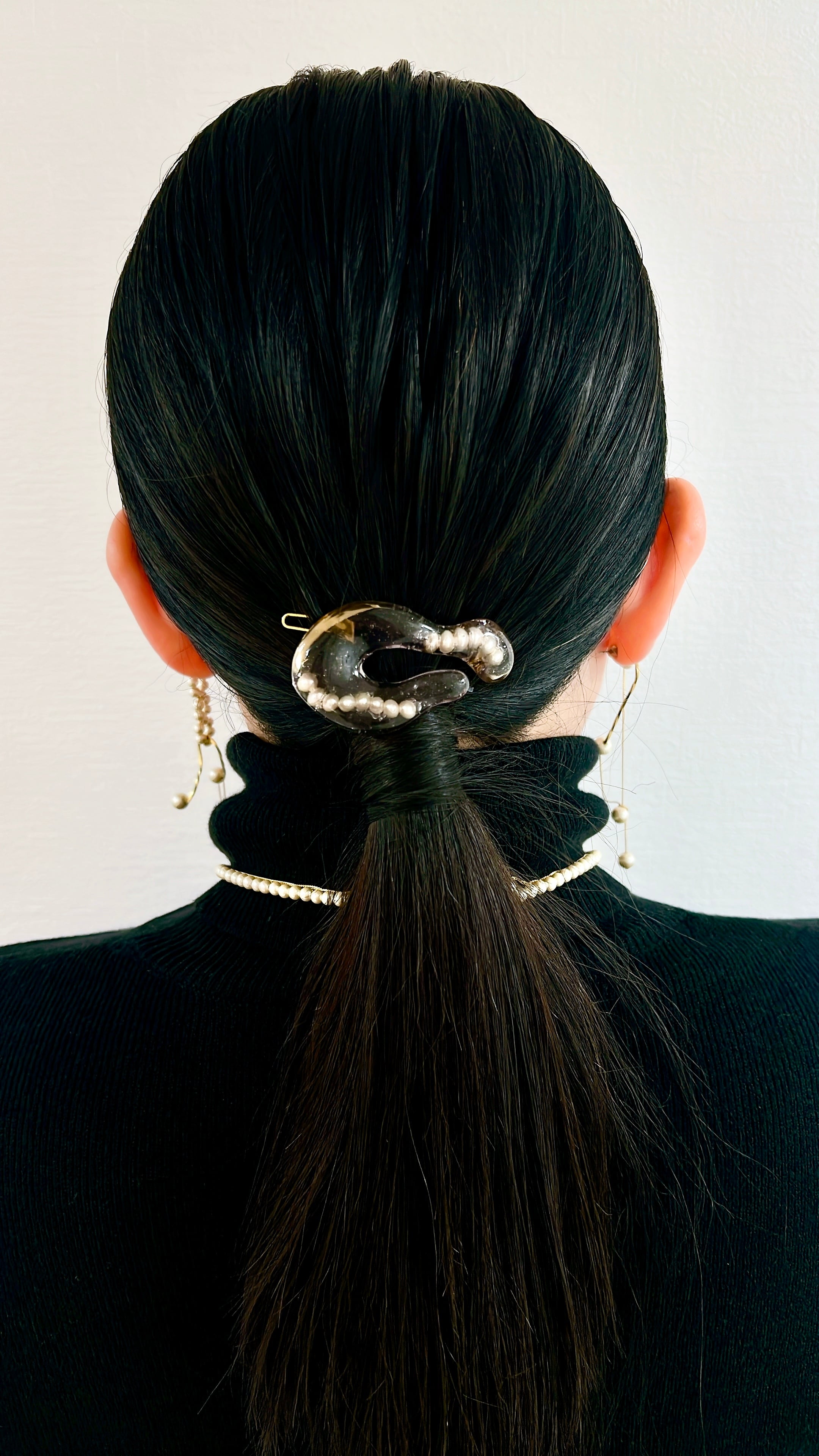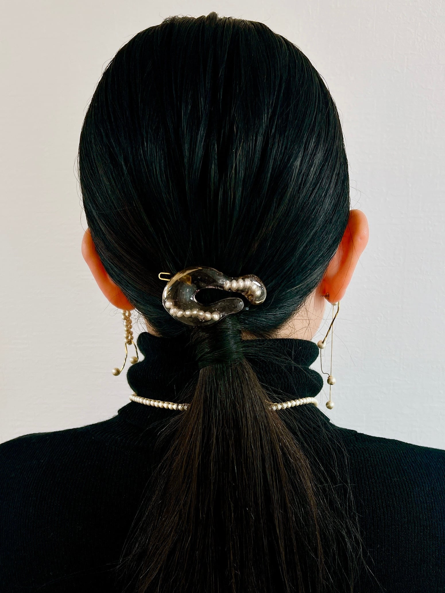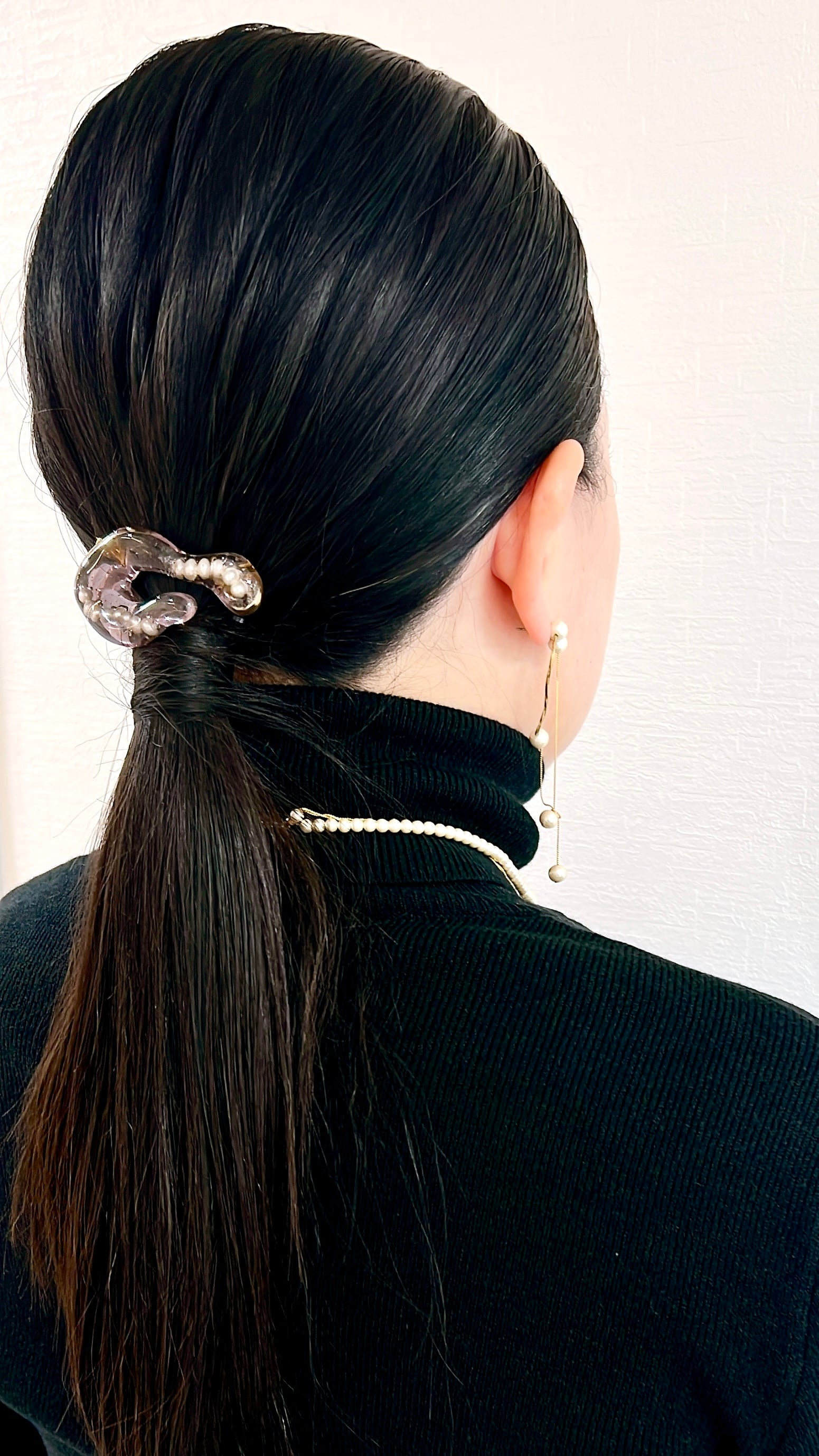 aokiyuriの一点一点表情の異なるコットンパールを閉じ込め、奥行きと静かな華やかさをプラス。