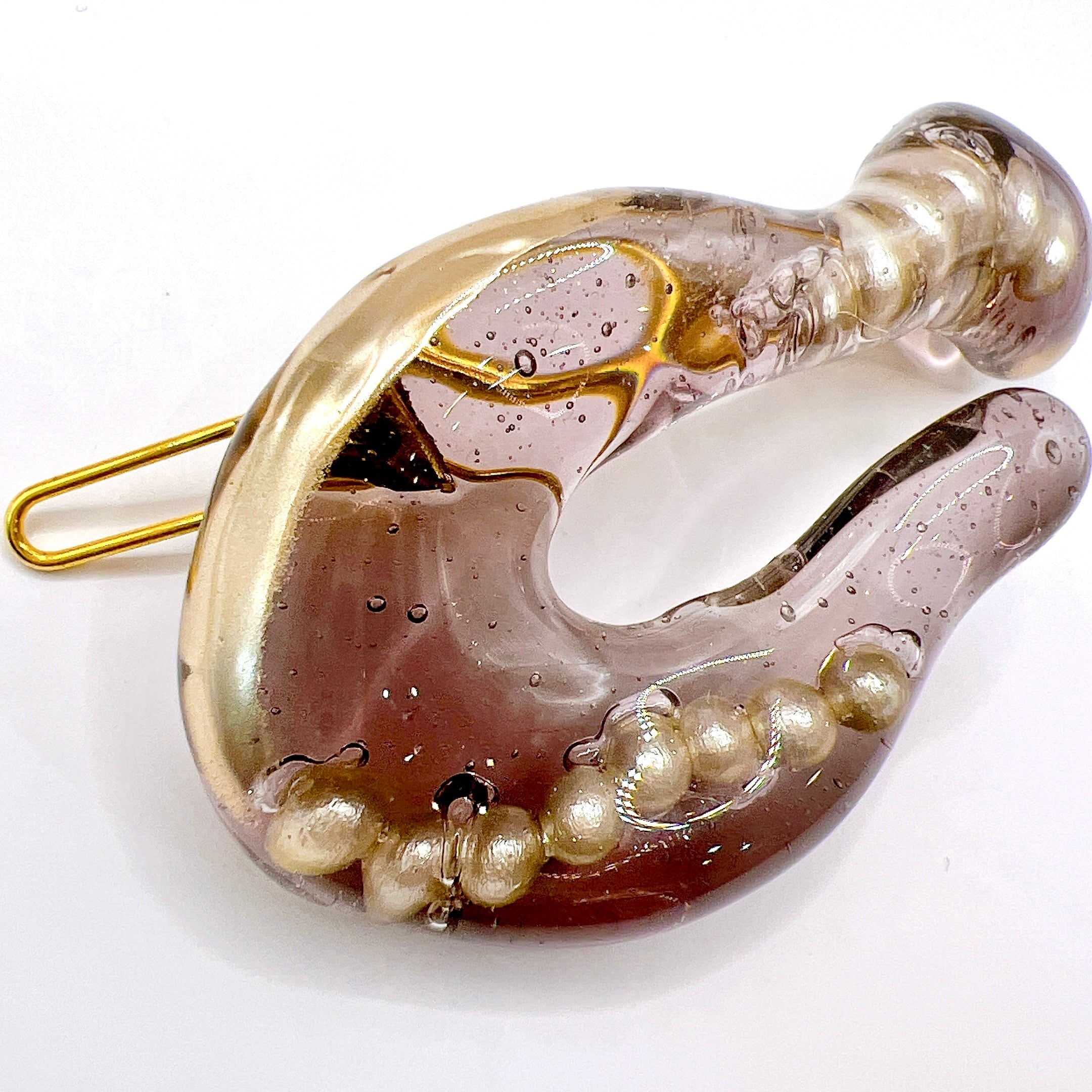 aokiyuriのパールを大胆に樹脂の中へ閉じ込めました。