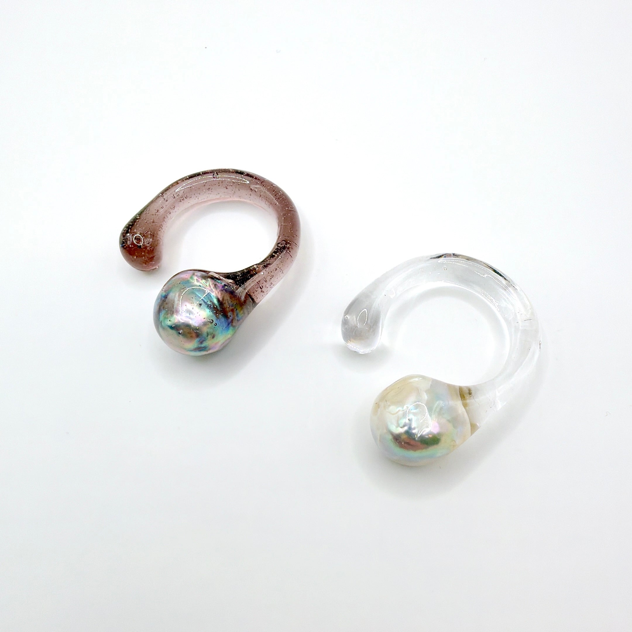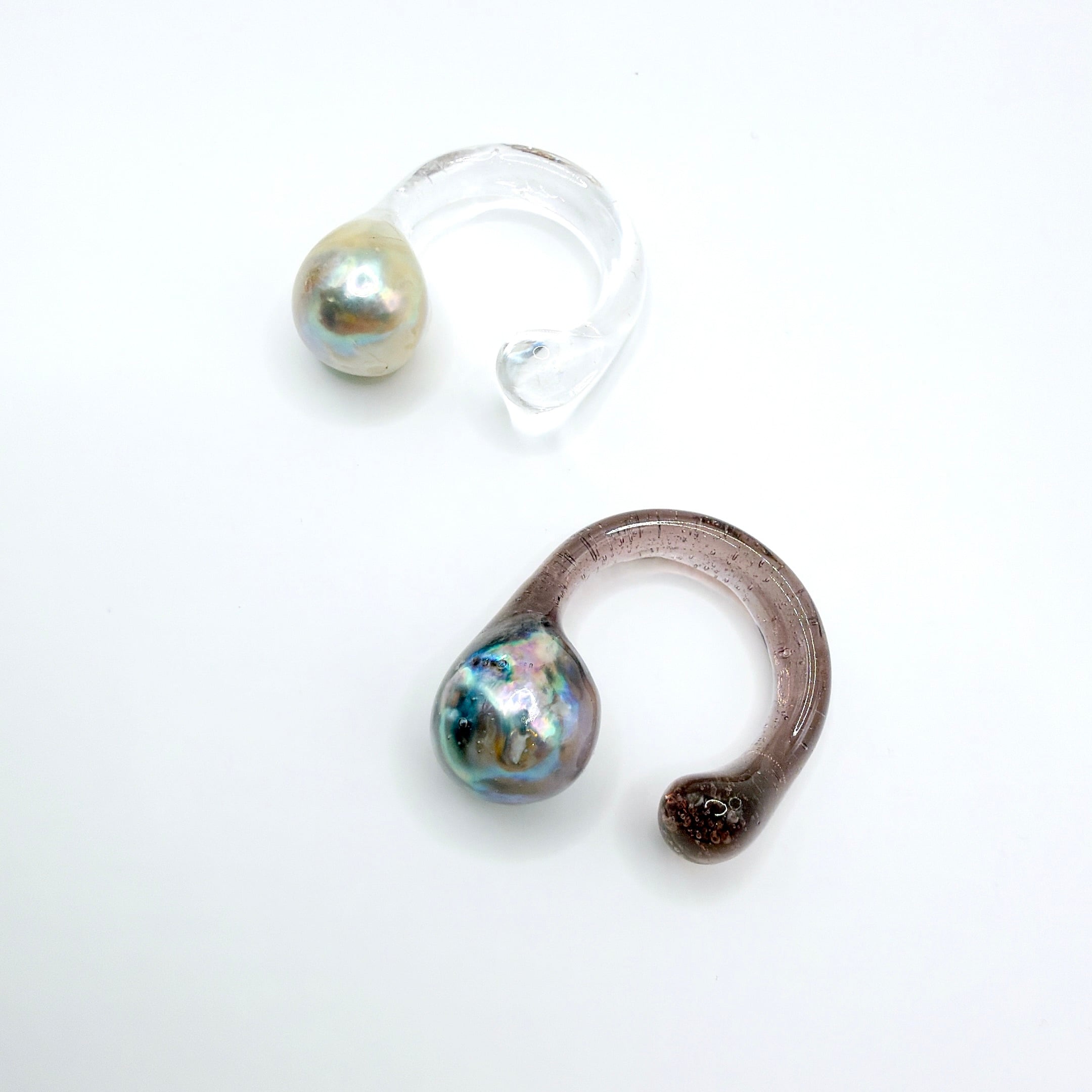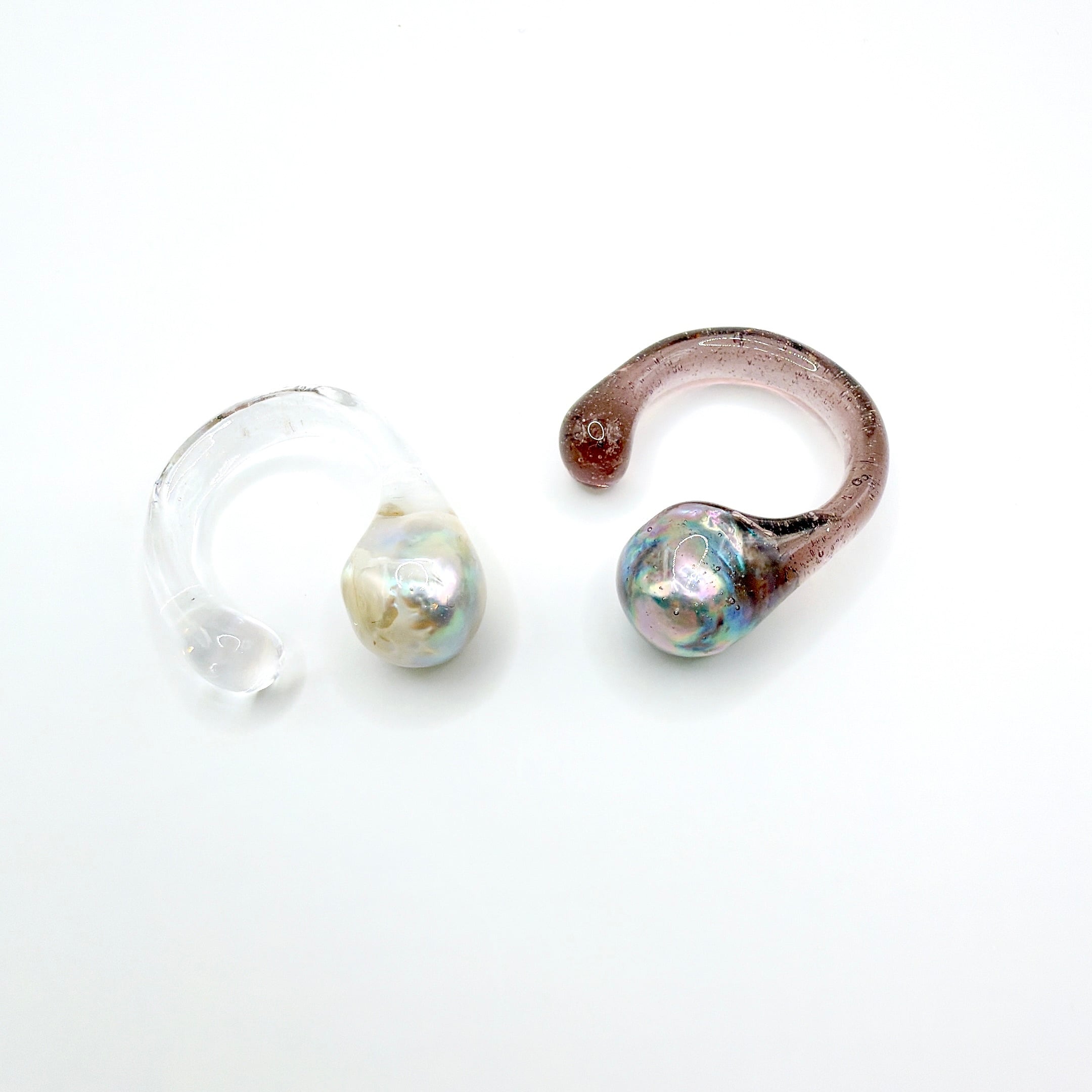 クリアやスモーキーな樹脂の中に浮かぶ真珠は