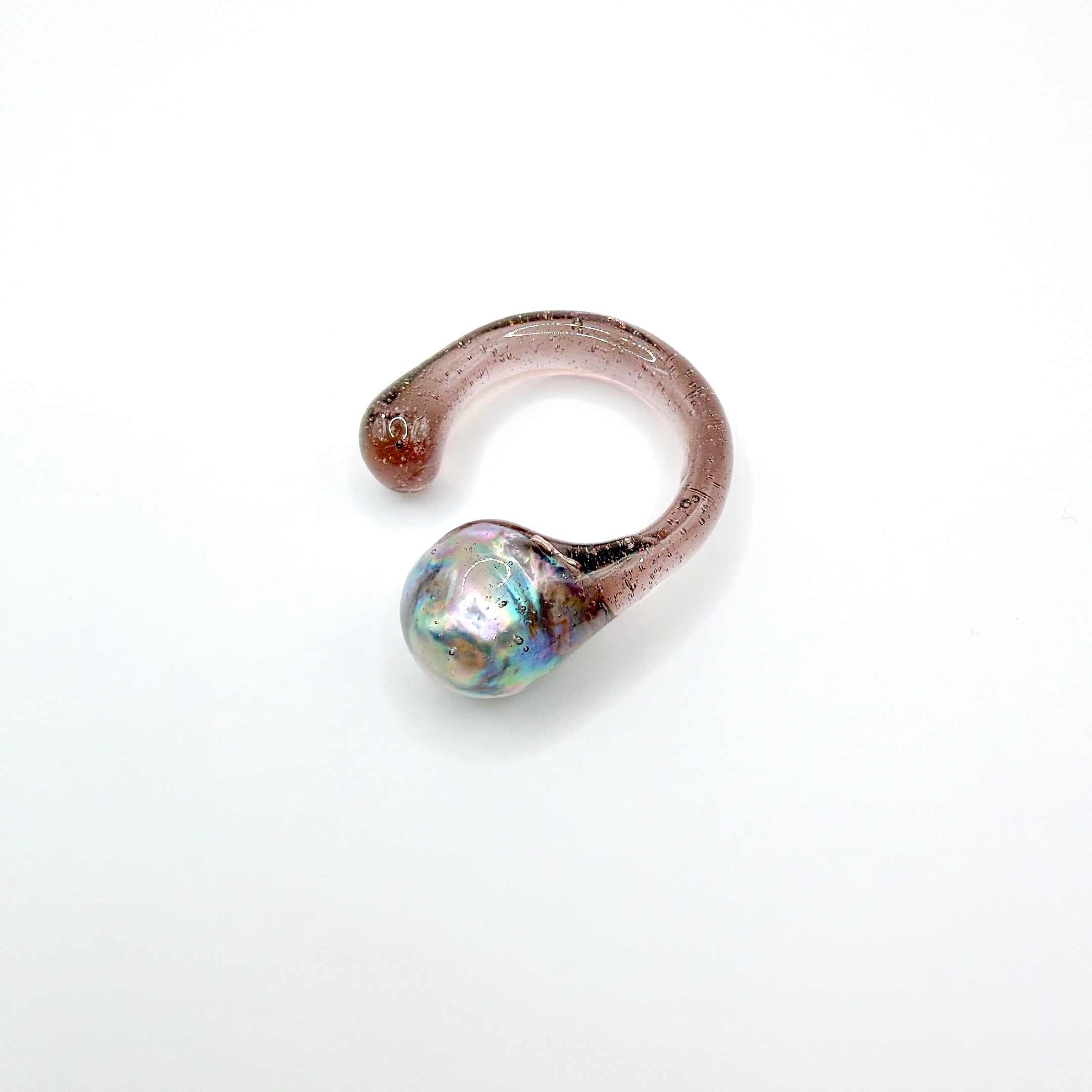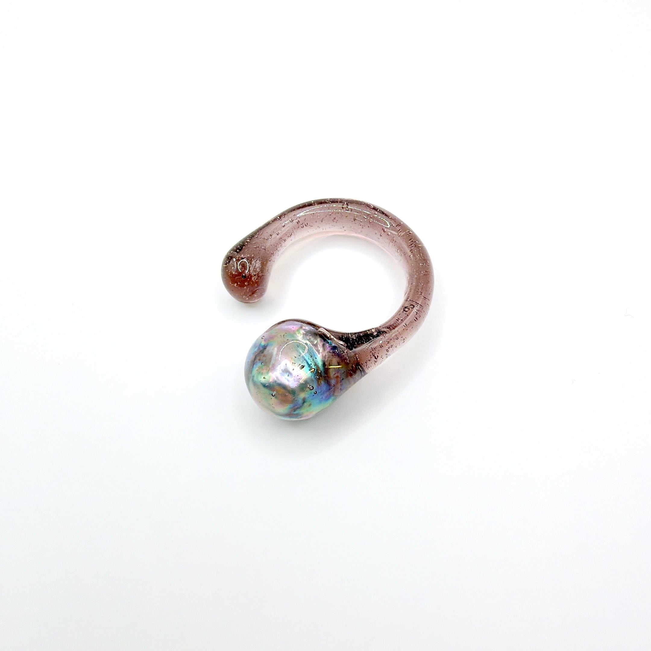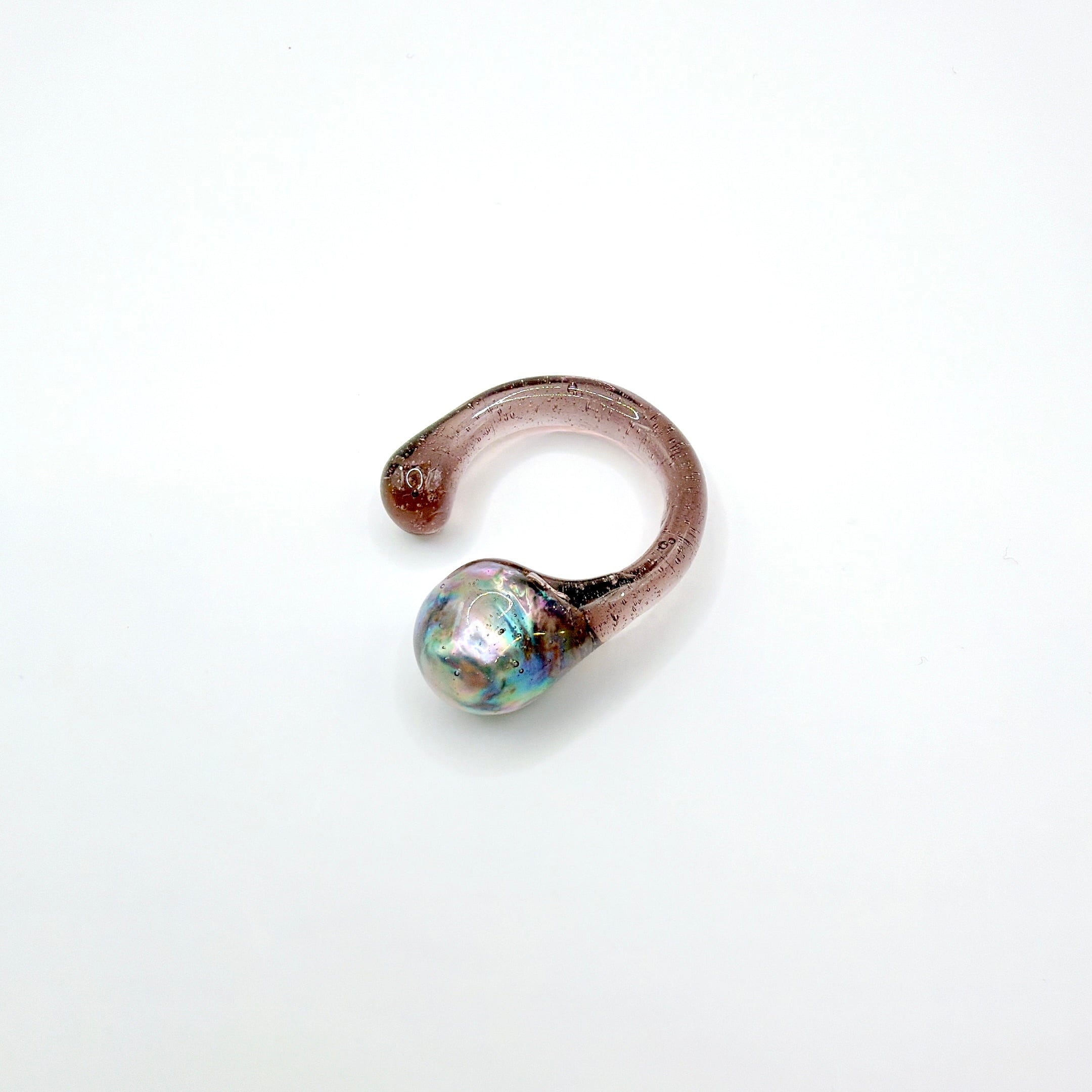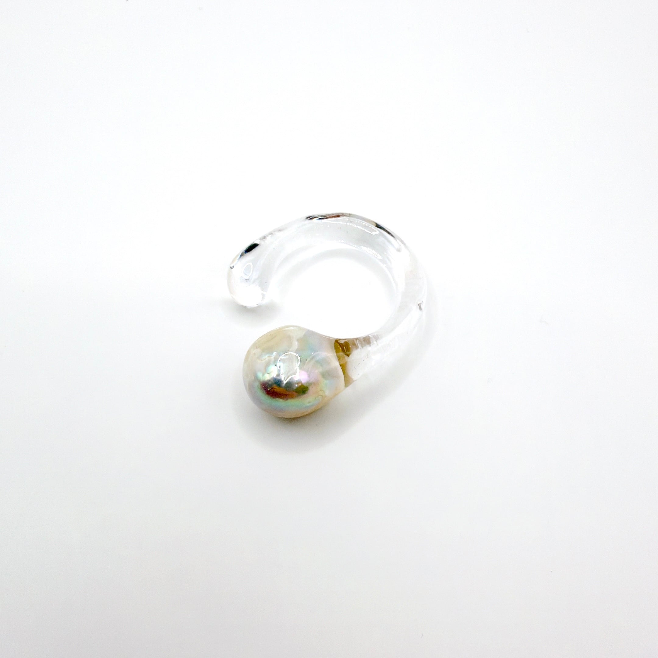 クリアやスモーキーな樹脂の中に浮かぶ真珠は